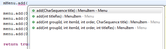 mMenu.add(1, 11, 0, "Alt seçenek 1");