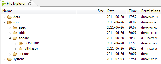 Bu sayede direkt sd kart altında klasörü oluşturduk. Aşağıda Eclipse’teki File Explorer’ın kod çalışmadan önceki ve sonraki hali var.